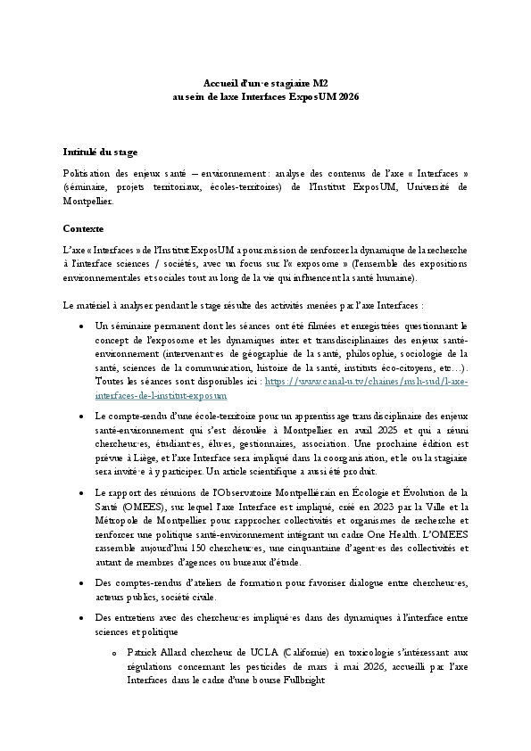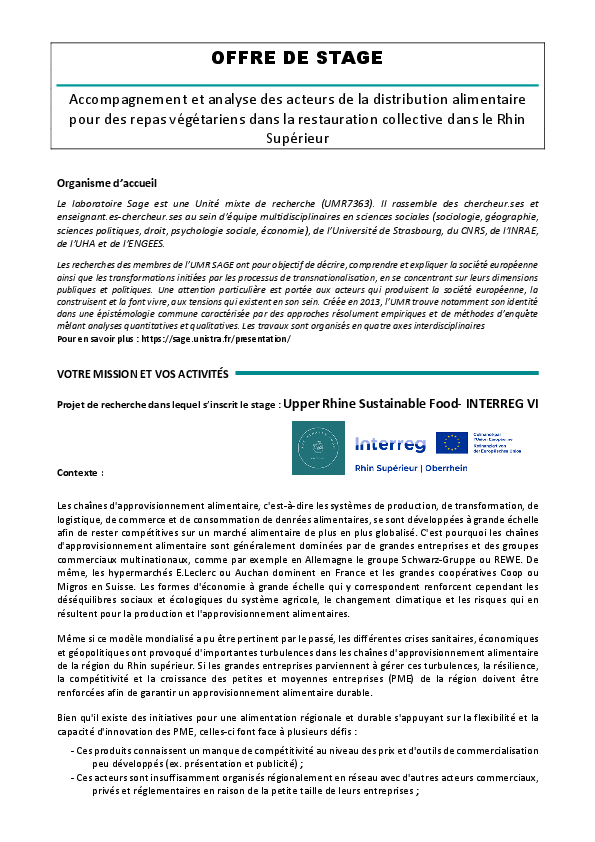 Offre de Stage de Master 2 Sciences Humaines et Sociales